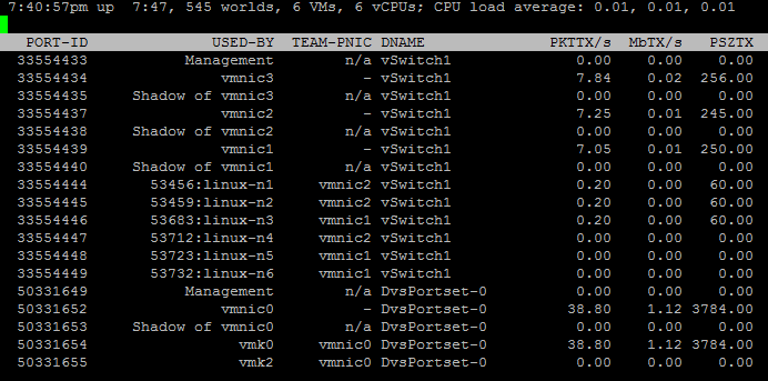 Next, let’s see if we can find the port identifiers. The easiest way to determine which local vSwitch port used by the uplinks is to use the net-stats command: