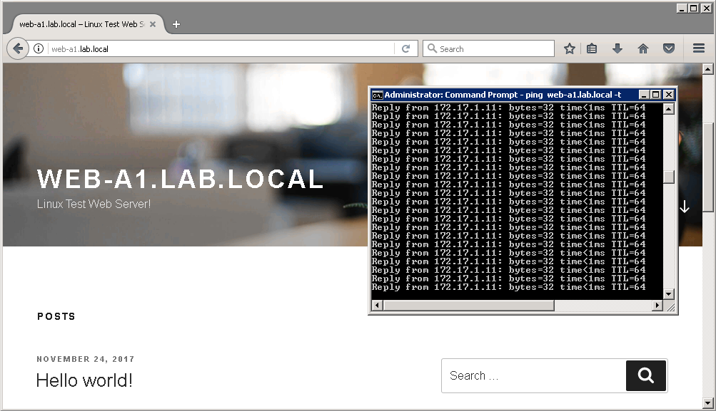 Below is what the web-a1’s landing page looks like from a VM in compute-a when it loads correctly: