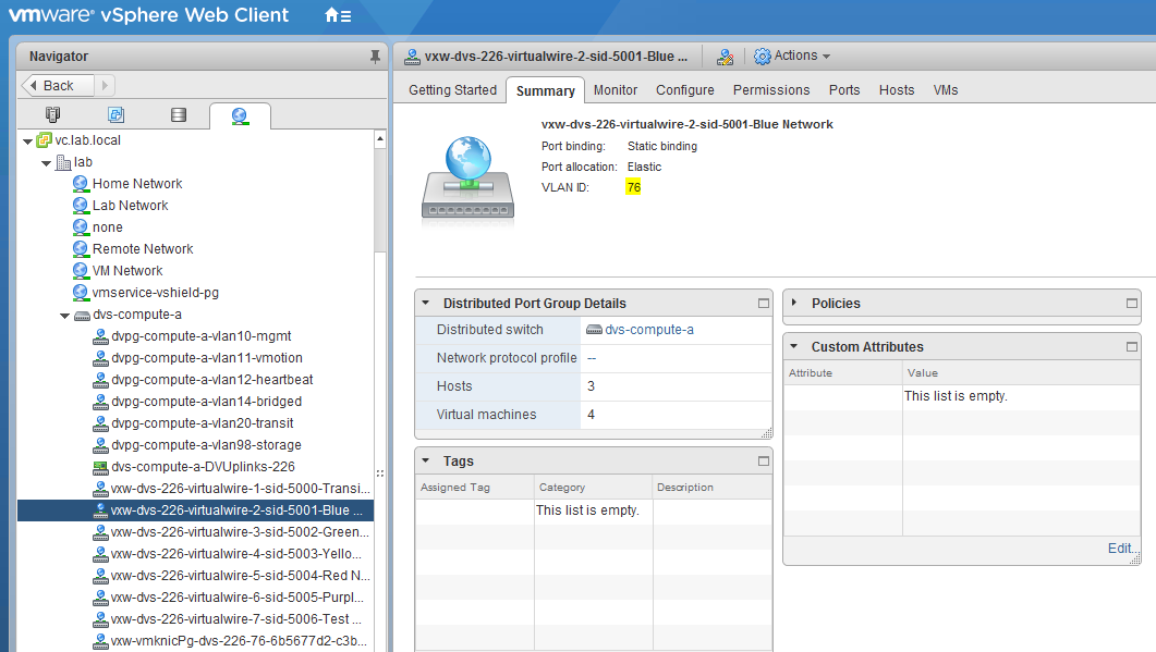As you can see above, the VTEP VLAN ID configured during host preparation is automatically inherited for each of these generated dvPortgroups.