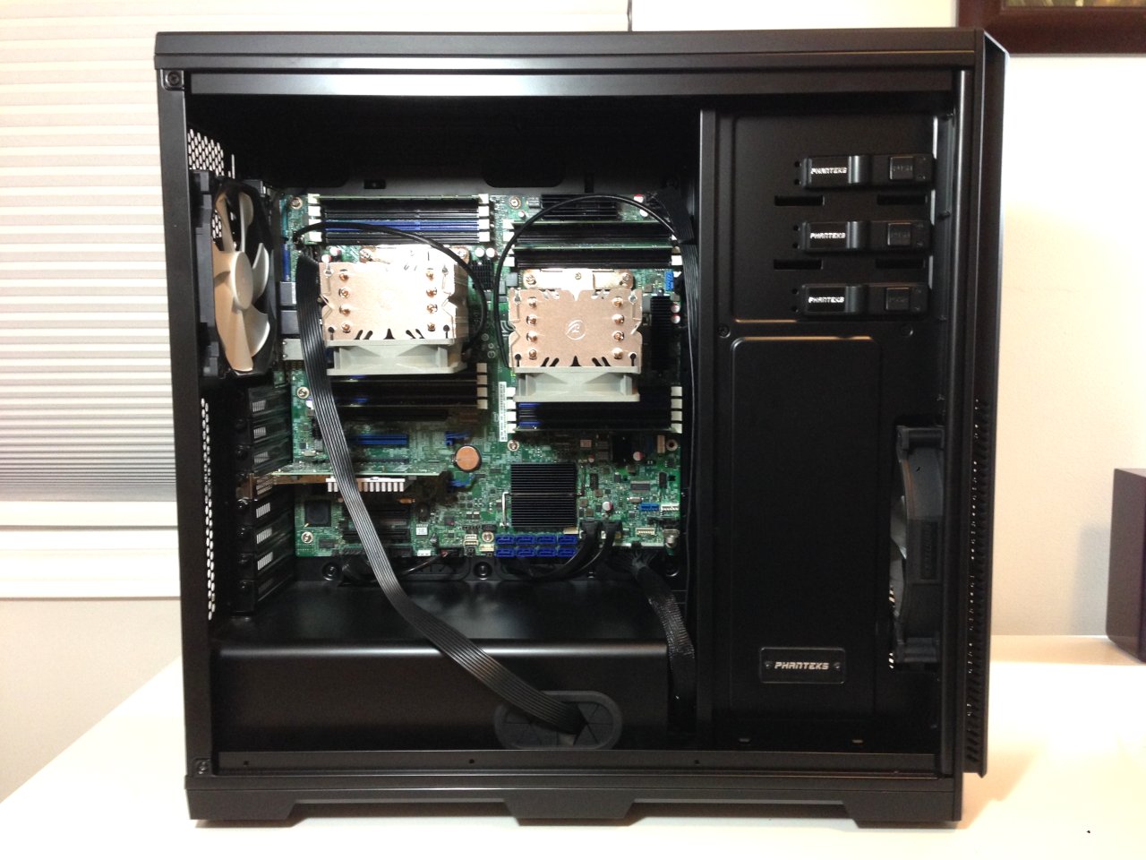 - Intel S2600CP Motherboard (16 DIMM slots, lots of PCI-E and SATA)