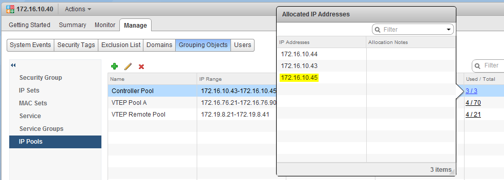 Some API calls involving the deployment of objects require the moref identifier of an IP address pool. Unfortunately, this moref can’t be found in the GUI, but with a couple of quick API calls can be obtained pretty easily.