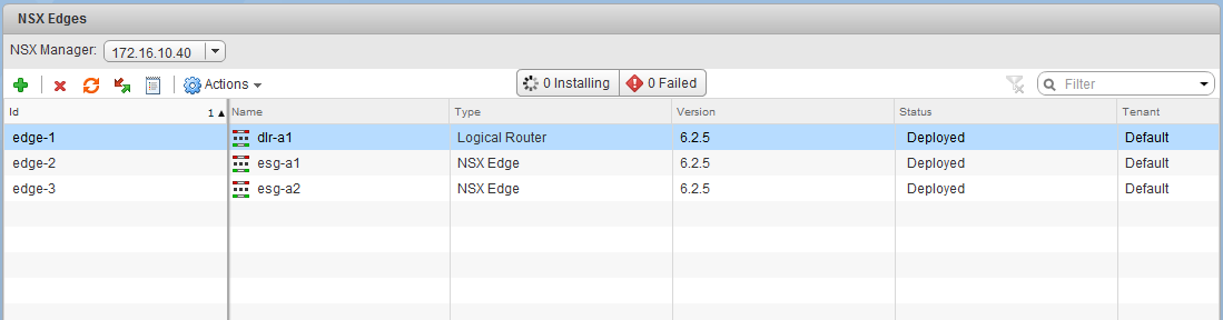 And there you have it. Much easier than navigating through the vCenter Managed Object Browser and doesn’t require full administrative privileges in vCenter. For the address bar trick, you’ll need to have a minimum of read-only privileges to the object you are trying to select, as well as read-only access to the NSX UI in order to view the Edge list and installation section. The NSX Central CLI commands do require that you log in to the NSX manager via CLI using an administrator account, but most individuals managing NSX would have this access.