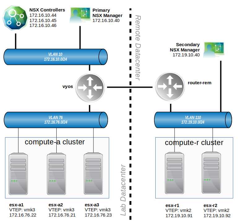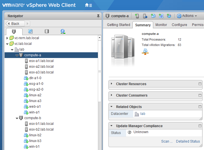 The concept of a ‘Universal Transport Zone’ just takes this a step further and allows clusters in different vCenter instances to connect to the same universal logical switches. The fact that we saw portgroups for the 9000-900X range of VNIs tells us that the compute-r cluster existed in the non-universal Transport Zone called ‘Remote TZ’, but was missing from ‘Universal TZ’.