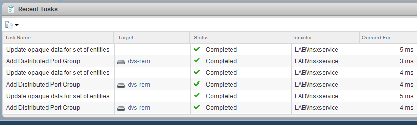 As soon as I added the compute-r cluster to the Universal TZ transport zone, we see an immediate slew of portgroup creation tasks: